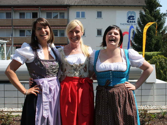 So fesch sieht man unsere Damen nur im Thermenhotel Gass, oder... auf dem Karpfamer Volksfest. Zur Belohnung machen wir einen Firmenabend im Haslinger Zelt am 27.8.2010