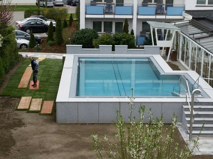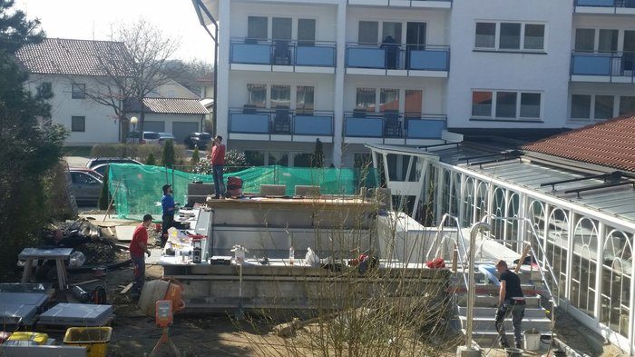 Der Umbau unseres Freibades nimmt Formen an. Zur Zeit wird kräftig gearbeiten, verlegt und geschweißt. Und morgen (Freitag, 24.3.) wird es zum 1. Mal mit Thermalwasser gefüllt. Am Montag werden noch Innenarbeiten ausgeführt und bei gutem Verlauf können wir am Mittwoch (29.3.17) vielleicht schon baden.