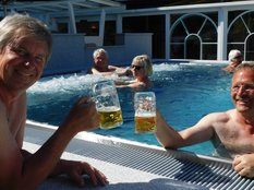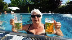 Das Freibier hat sehr gut geschmeckt, wie man sieht, außnahmsweise auch im neuen Becken.