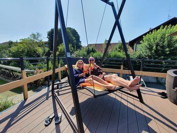 Der Star auf unserer Liegeterrasse ist gestern eingetroffen. Auf der neuen Schwebeliege schaukeln Sie sanft in den wohlverdienten Urlaubsschlaf. Genuss pur, bei einem kühlen Bier oder einem leckeren Cocktail. Machen Sie wieder Urlaub, geniessen Sie diesen und vergessen für einen Moment alles, was um Sie herum passiert.