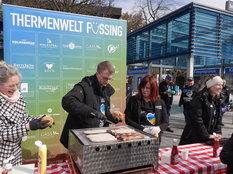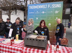 Die Mitglieder der Thermenwelt Füssing haben am Samstag, den 5.3. spontan auf dem Kurplatz gegrillt, um Spenden für den Frieden in der Ukraine zu sammeln. Viele Passanten, Urlauber und Einheimische haben auf eine leckere Grillwurst vorbeigeschaut und kräftig gespendet. Am Ende des Tages kam ein Betrag von 7400,-- Euro zusammen, der spontan von den Mitgliedern der Thermenwelt auf 10.000,-- € aufgerundet wurde.
