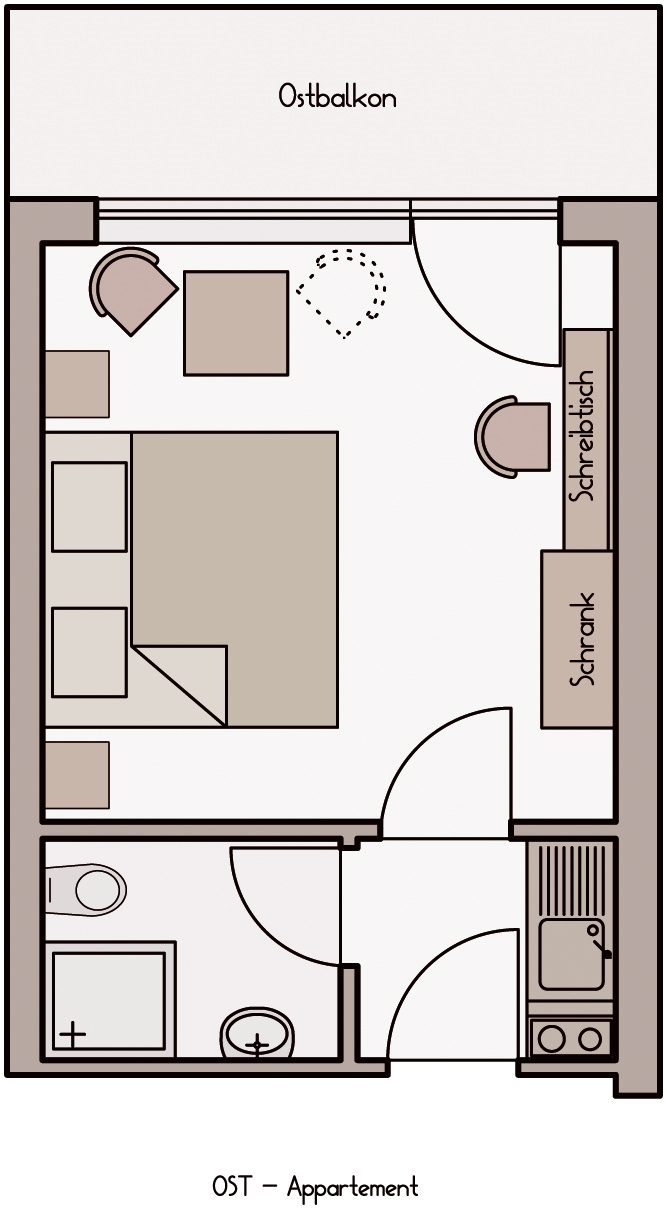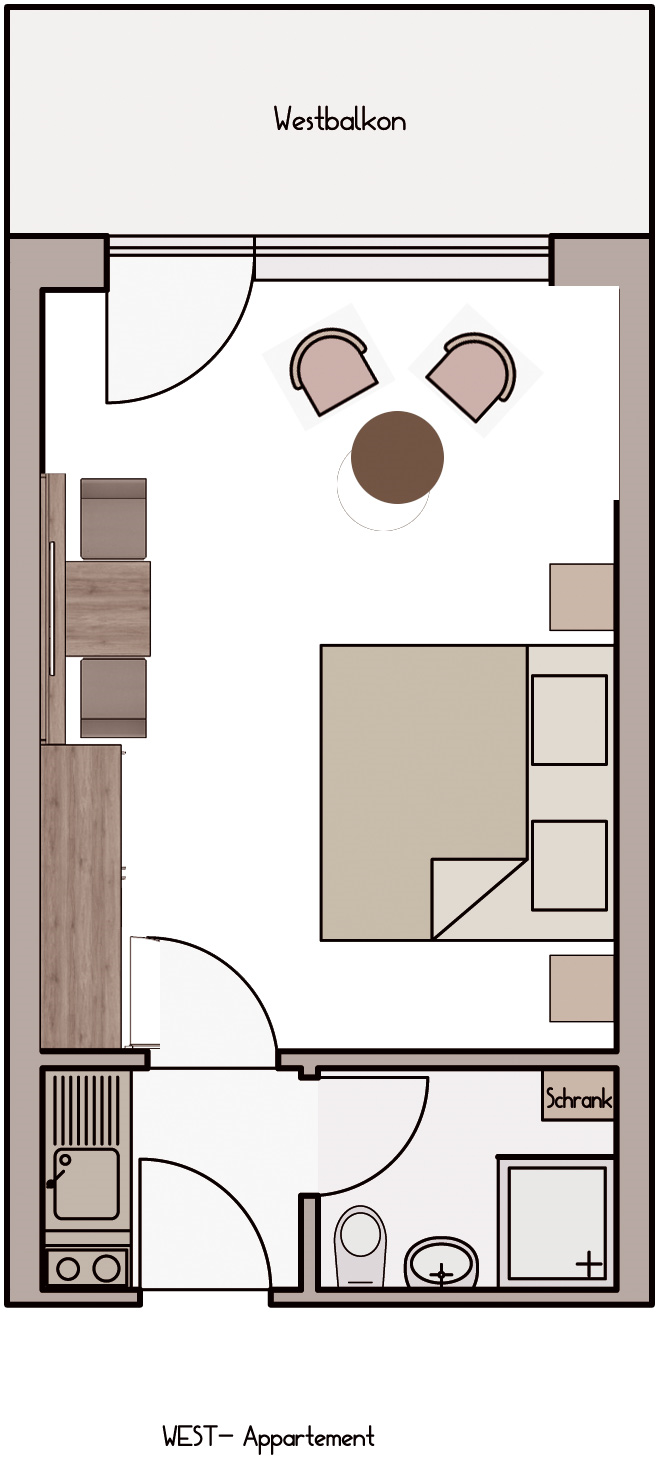 Modern ausgestattet und in verschiedenen Größen präsentieren sich unsere Appartements. Wählen Sie, ob mit oder ohne Frühstück, buchen Sie als Extra die Zimmerreinigung, oder pflegen und verpflegen Sie Ihr Appartement und sich selbst. Urlaub so wie Sie es sich wünschen.